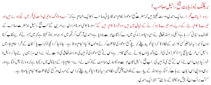 Shaikh Raheel will be an admonishing sign. People of our Jamaat have