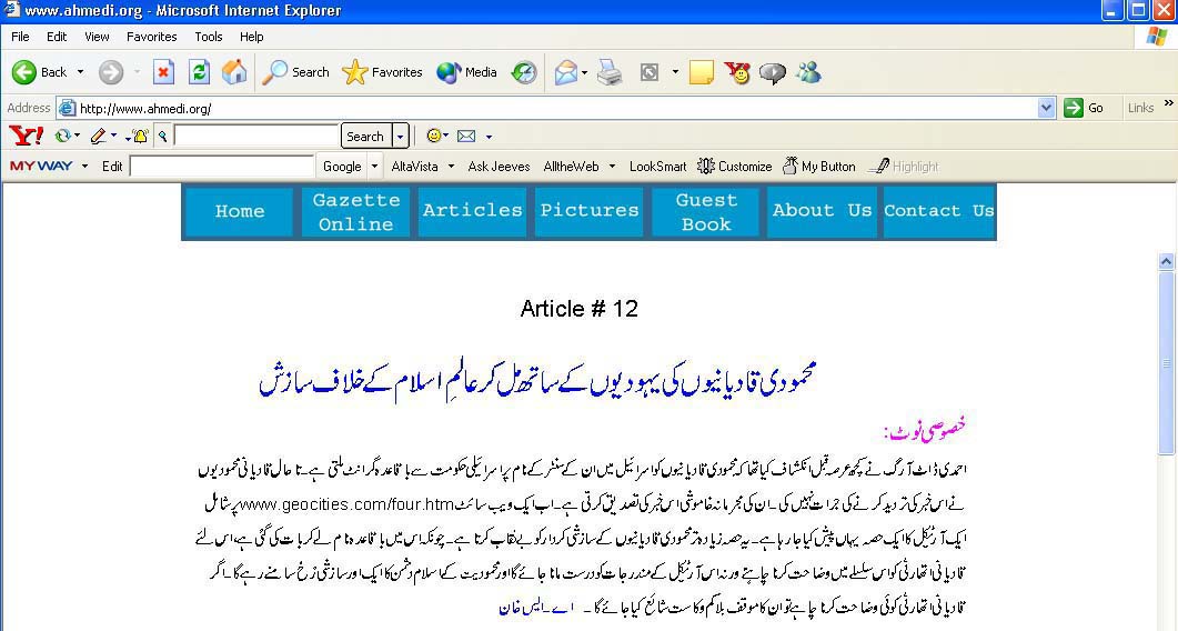 Special Note: Ahmedi.org had revealed some time back that Mehmudi Qadianis are getting grants from Israeli government in the name of their center. Till now Qadianis/Mehmudis have not dared to refute this news. Their criminal silence is confirming this report. Now some portions of an article on one website www.geocities.com/four.htm are presented here. This portion mostly exposes the intriguing role of Mehmudi Qadianis. Since this article has named certain persons, therefore Qadiani authorities should issue clarification on this matter otherwise the contents of this report will be considered as true and another anti-Islamic intriguing aspect of Mehmudiat/Qadianiyat will be on the forefront. If the Qadiani authority (Jamaat Ahmadiyya) wants to issue a clarification, then their view point would as it is be published. ..... A. S Khan.