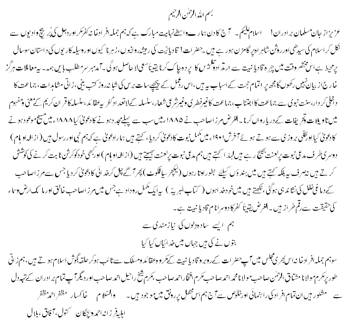 Following is the image of Muzaffar Ahmad's signed declaration and statement after leaving the Ahmadiyya Jamaat.